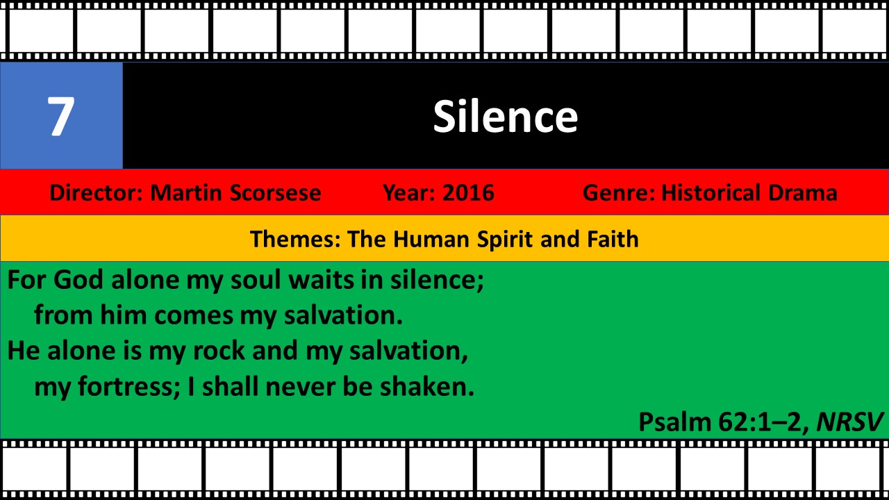 Number 7 on the list, Silence, takes place at a similar time to The Mission. I can’t say a lot without giving too much away. What I can say, is that it is difficult to watch the terrible experiences that so many converts to Christianity experienced in Japan’s early years of engagement with Europeans. It raises profound questions about how to respond to religious persecution in its most life-threatening forms.