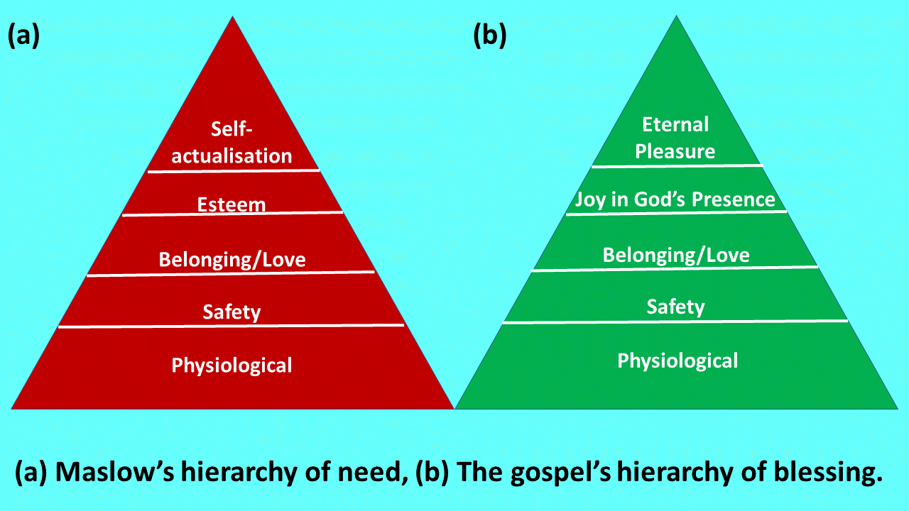 If the hierarchy of need has as its hard-won pinnacle self-actualisation, our hierarchy of blessing has an eternity with the living God at the summit. This blessing is achieved in Christ, on our behalf, and is not subject to a fiercely competitive race to the top. The apostle Paul of course does portray the journey as a race, but this is a race that all can win in Christ.